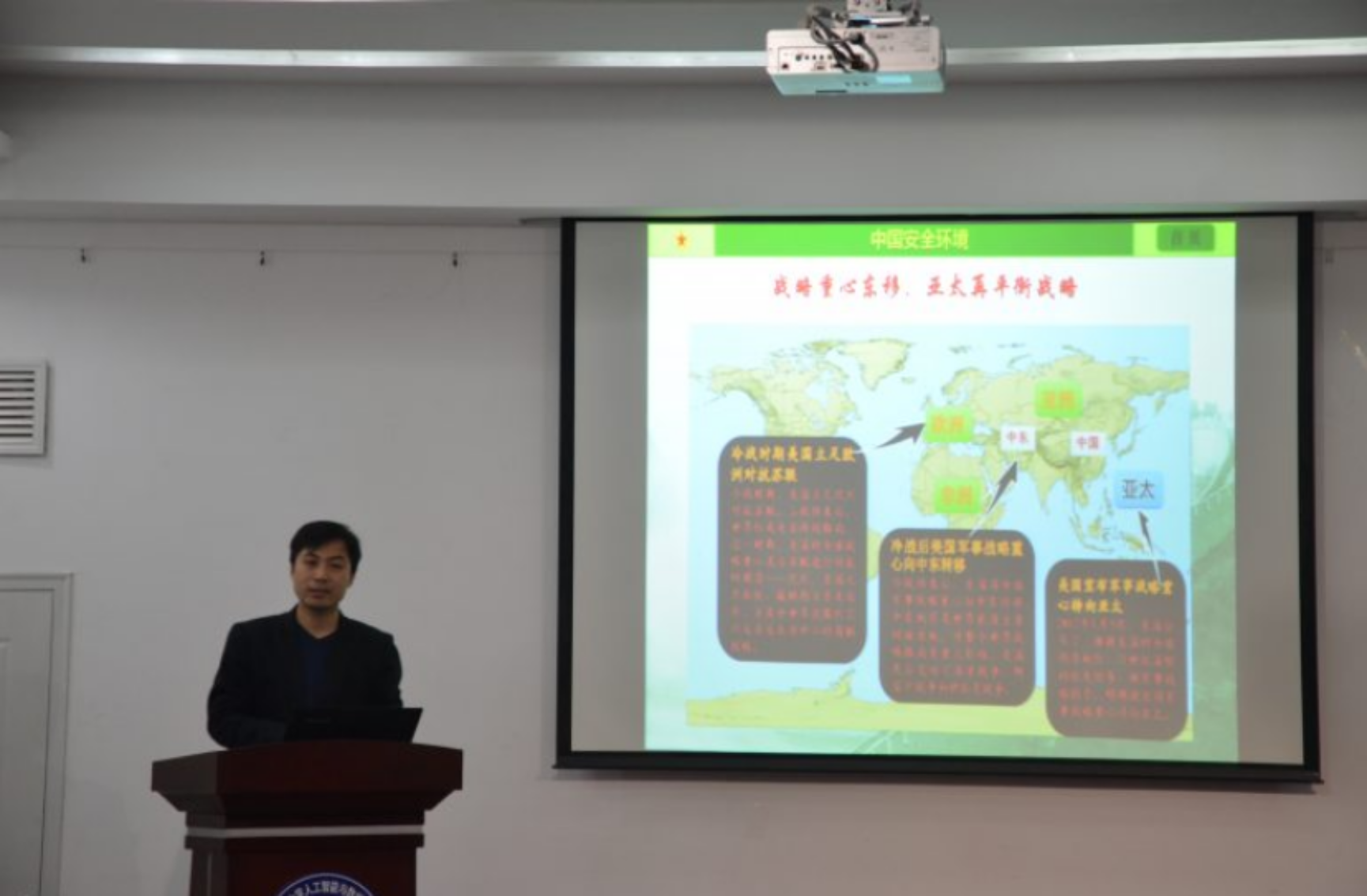 11月15日晚,由王靖鑫老师讲授的党课培训第四讲——中国安全环境概述,在网赌app下载中心 网赌app 楼102开课。此次授课对于学生党员们进一步了解中国安全环境理论知识,增强维护组作何平统一的责任意识有着指导意义。
