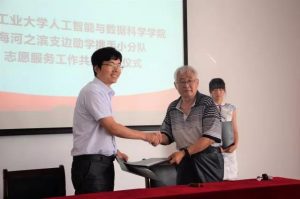 6月14日下午,河北工业大学网赌app下载中心 与天津市志愿联合会劳动模范分会、海河之滨支边助学携手小分队志愿服务工作共建签约仪式在网赌app 楼102报告厅举行。天津市志愿服务联合会劳动模范分会会长王连金、秘书长赵明月等5名劳动模范,海河之滨支边助学携手小分队队长杨家仁、副队长王家强等4名志愿者,网赌app 党委书记商植桐、副院长董永峰出席了本次活动,网赌app 50余名同学参与了此次活动。会议由院团委书记张茜茜主持。