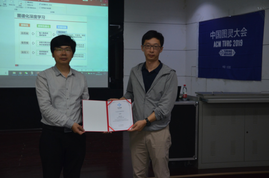 四场报告内容丰富,各有侧重,受到与会师生的一致好评。与会人员分别就自己的在研究过程中遇到的问题与四位特邀讲者进行深入研讨,现场互动气氛热烈。董永峰教授向四位讲者分别颁发了ACM中国理事会授予的荣誉证书。