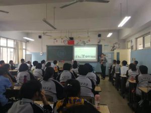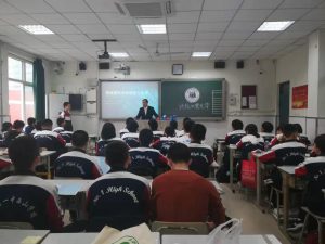 开幕式后,各高校领导、专家在学生志愿者的引领下去各自分会场展开宣讲活动。李练兵教授再次为一中学子带来了题为《新能源技术的现在和未来》的科普讲座,由于时间有限,梁书记借助宣传片向参会同学进行了学校推介,同学们认真聆听,踊跃发言,气氛热烈,场面火爆。