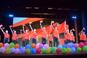 大合唱《我爱你中国》将晚会气氛推至最高点。观众们全体起立,怀着对祖国的敬仰,挥舞着手中的国旗,用歌声诉说我们对祖国的爱与祝福,以独特的方式共同庆祝祖国70周年华诞。晚会现场变成红色的海洋,圈圈赤子心,殷殷中华情,“我爱你中国”这句真诚而朴实的话语,饱含着老师同学深深的爱国之情。