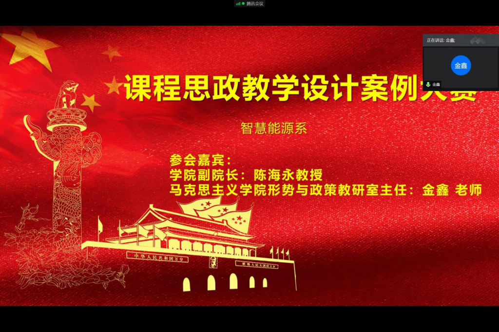 为落实“立德树人”根本任务,实施“铸魂育人”工程,引导教师自觉将思政教育融入课程教学,切实把思想政治工作贯穿教育教学全过程,6月27日下午4:00,网赌app 智慧能源系教职工通过腾讯会议成功举办线上课程思政教学设计案例大赛。此次大赛邀请到网赌app 副院长陈海永教授,马克思主义网赌app 形势与政策教研室主任、支部书记金鑫老师,智慧能源系副主任张家安老师为评委专家,智慧能源系全体教师出席。