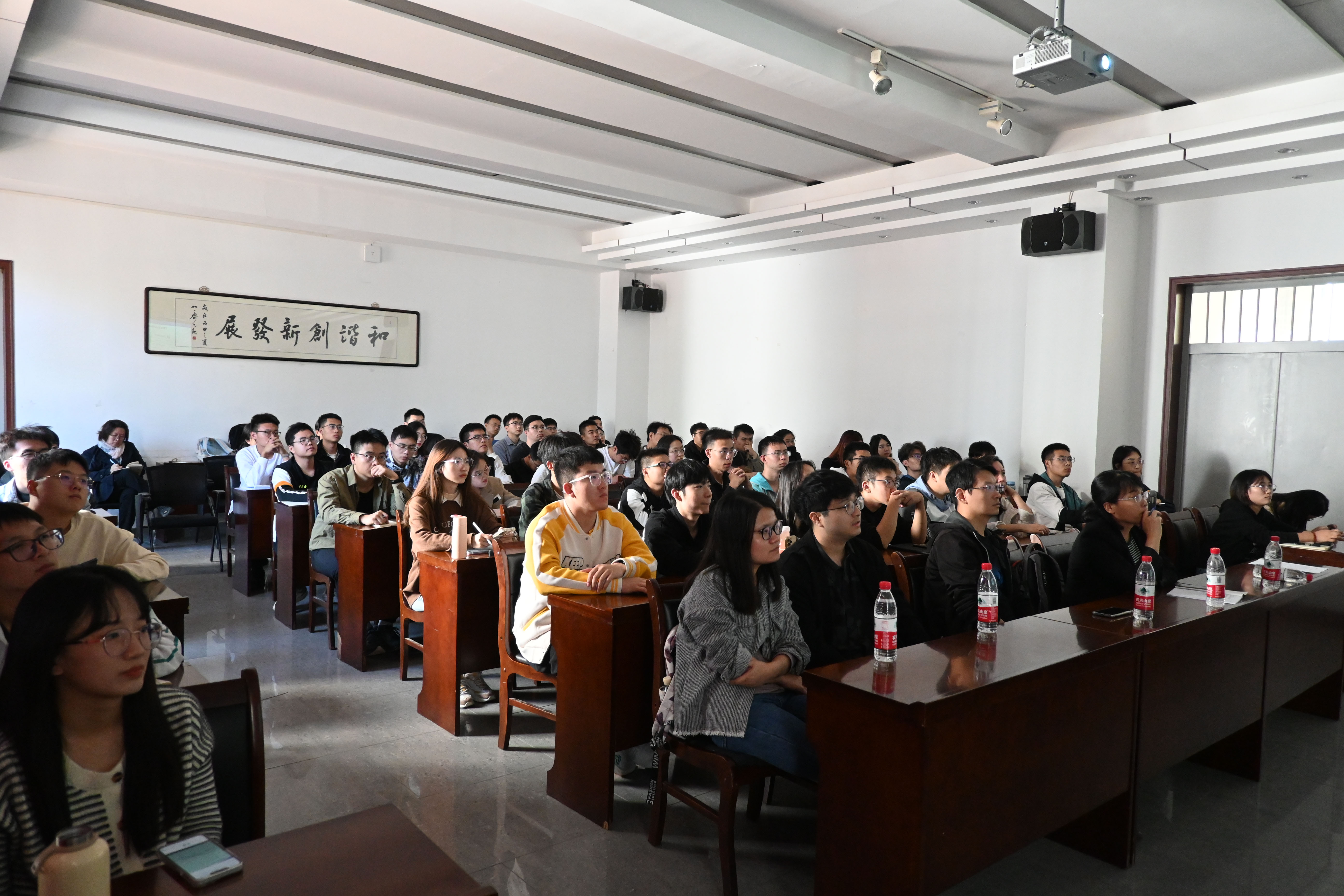 10月14日上午10点30分,天津工业大学工学部副主任汪剑鸣教授带来题为“智能移动机器人设计感知与交互前沿技术”的学术报告。汪教授是天津市自主智能技术与系统重点实验室主任、天津市自主智能技术与系统国际联合研究中心主任、国家级一流本科专业“计算机科学与技术”专业负责人、天津市131创新型人才一层次、天津市高等学校高层次人才。在报告中,汪教授指出近年来机器人技术迅猛发展,正极大改变着人类生产和生活方式,已上升为国家发展战略。之后,李教授重点介绍了天津工业大学团队在智能移动机器人等方面的最新研究成果,内容包括:仿生机器人的功能设计与控制技术、智能机器人视觉感知技术、智能机器人前沿交互技术等。本次学术讲座让同学们开拓了研究视野,了解学术前沿进展,每位同学都收获颇丰。