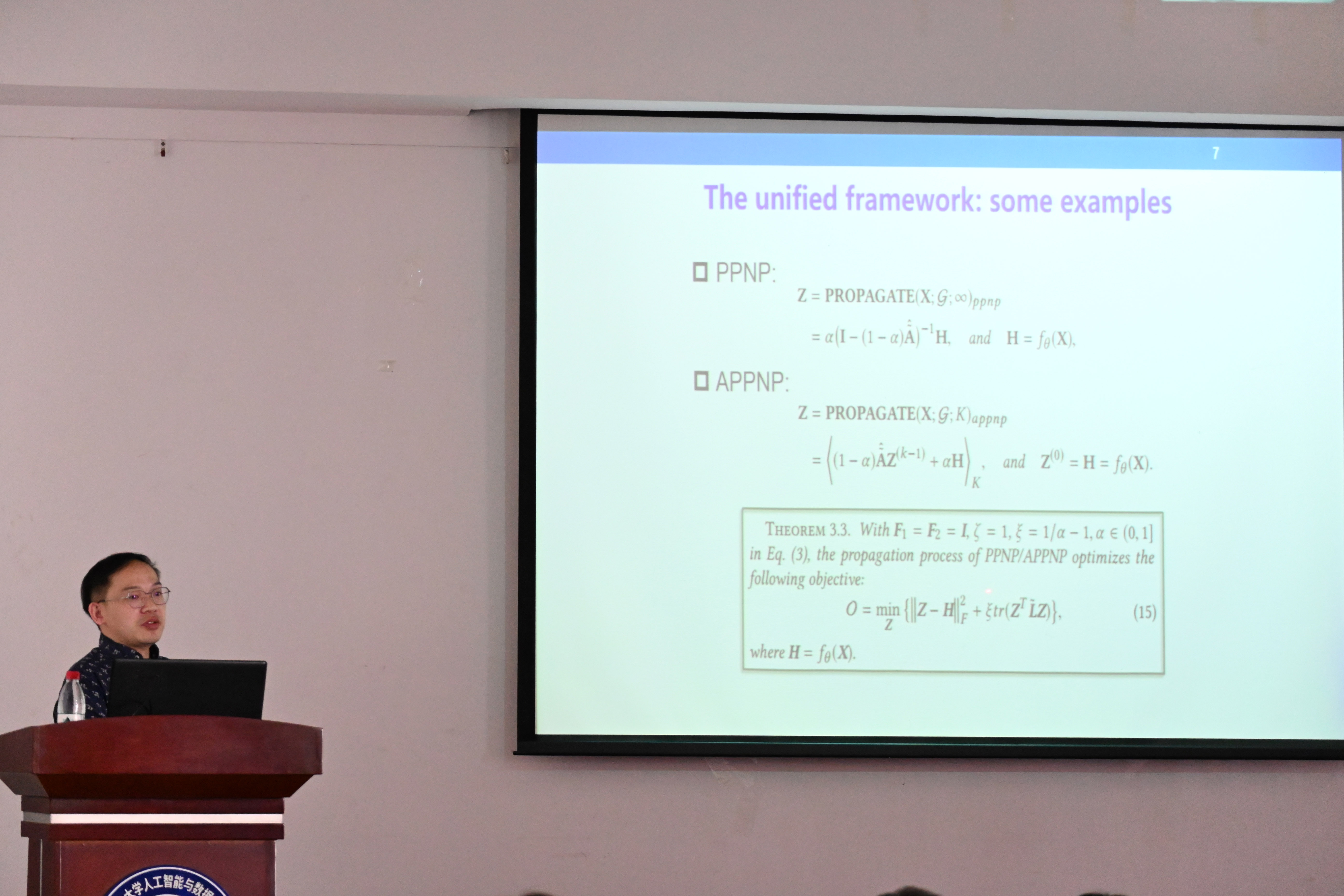 10月13日下午14点30分,北京航空航天大学王啸副教授带来题为“图神经网络的共性基础初探”的学术报告。王教授是国家优秀青年科学基金获得者、教育部自然科学一等奖获得者、中国电子学会科技进步一等奖获得者、吴文俊人工智能优秀青年奖获得者、连续两年入选斯坦福大学发布的全球Top 2%顶尖科学家榜单、入选AMiner评选的AI2000最具影响力学者Honorable mention。在报告中,王教授重点介绍百花齐放的图神经网络其背后的机理中存在的诸多疑问:图神经网络是否有内在的统一“价值观”,不同的图对比学习模型背后,是否同样也共用一套“游戏规则”,追寻图神经网络体系下的统一性,又会带来什么样的潜在价值。围绕以上问题,王教授对两类典型的图神经网络(半监督学习的图卷积网络和自监督学习的图对比网络)展开了介绍,梳理不同架构或操作之间的联系,为我们审视与改进现有图神经网络带来了新的视角。报告结束后,王教授就同学们研究中的相关问题展开了热烈的沟通。